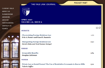 The Yale Law Journal is one of the most highly regarded academic publications in the field of law. Each year the Journal's Editors receive thousands of submissions for publication which they have to narrow down to a few dozen articles to publish.